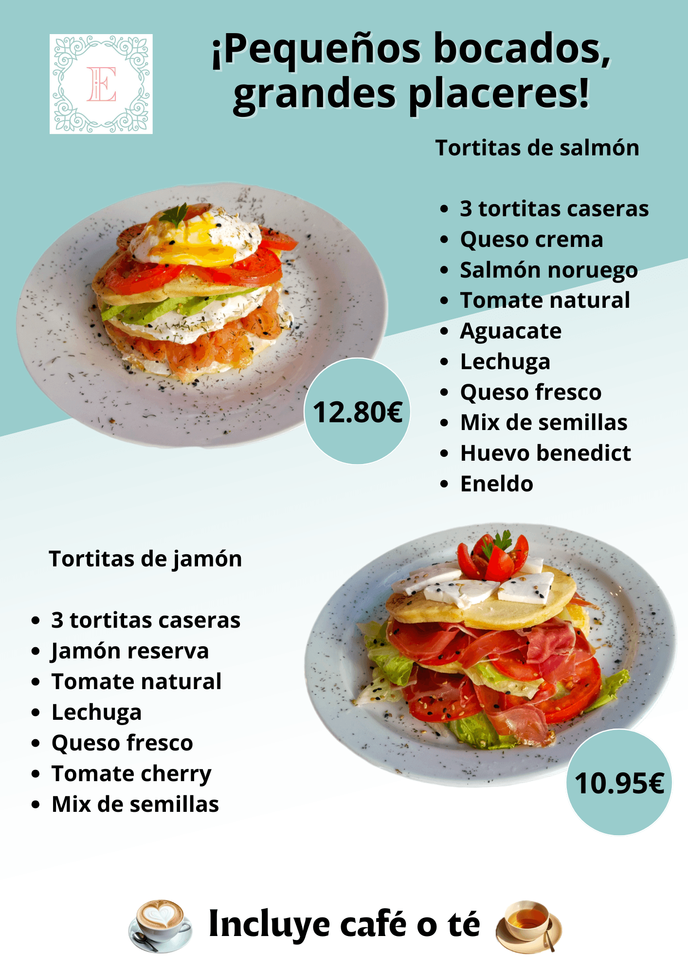 Opciones Saladas: Si prefieres algo más sustancioso, prueba nuestras tostadas gourmet, bocadillos artesanales y tortillas perfectas. Cada plato está preparado al momento, asegurando frescura y sabor en cada porción.